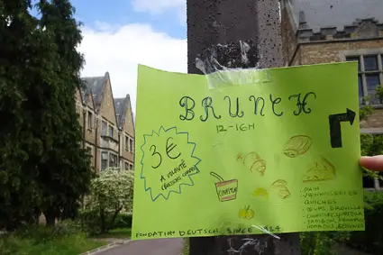 The Fondation Deutsch de la Meurthe is the oldest residence at CIUP. It's named after Émile and Louise Deutsch de la Meurthe, who donated money for the project. The collection of six buildings, which together accommodate 437 students, opened in 1925. The Fondation Deutsch de la Meurthe was initially reserved for French students. Today, it has residents of many nationalities. (The second photo above shows a poster for a Brunei-themed brunch.)