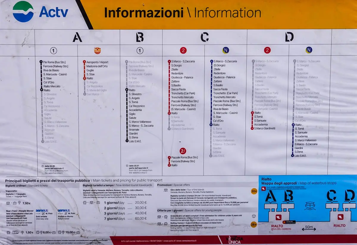 RialtoFrom: Venice Waterbus Stops Rialto is one of Venice's busiest ACTV stops. It consists of four pontili or floating platforms on the eastern or San Marco side of the Grand Canal, immediately south of the Rialto Bridge.